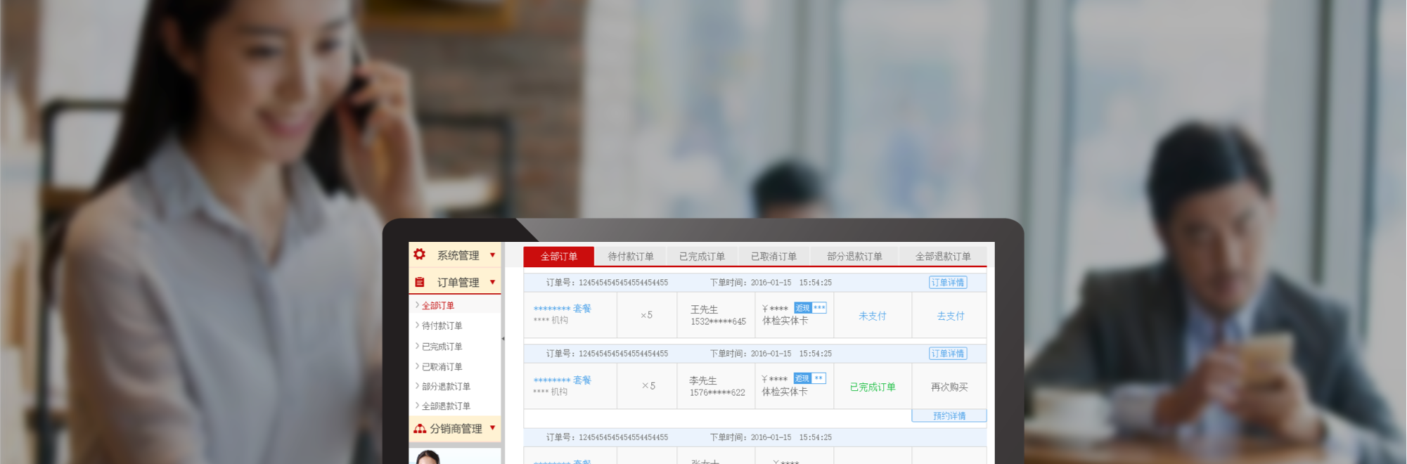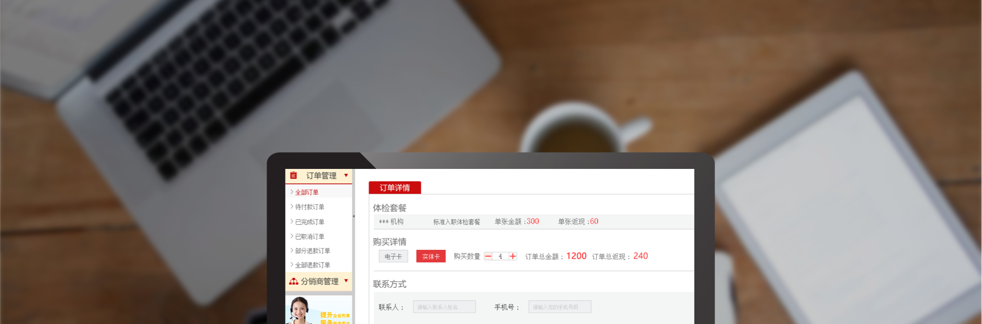覆蓋全國的體檢資源,定制方便,落單系統(tǒng)功能強大方便,多平臺一體,終于能將業(yè)務(wù)推廣至全國。